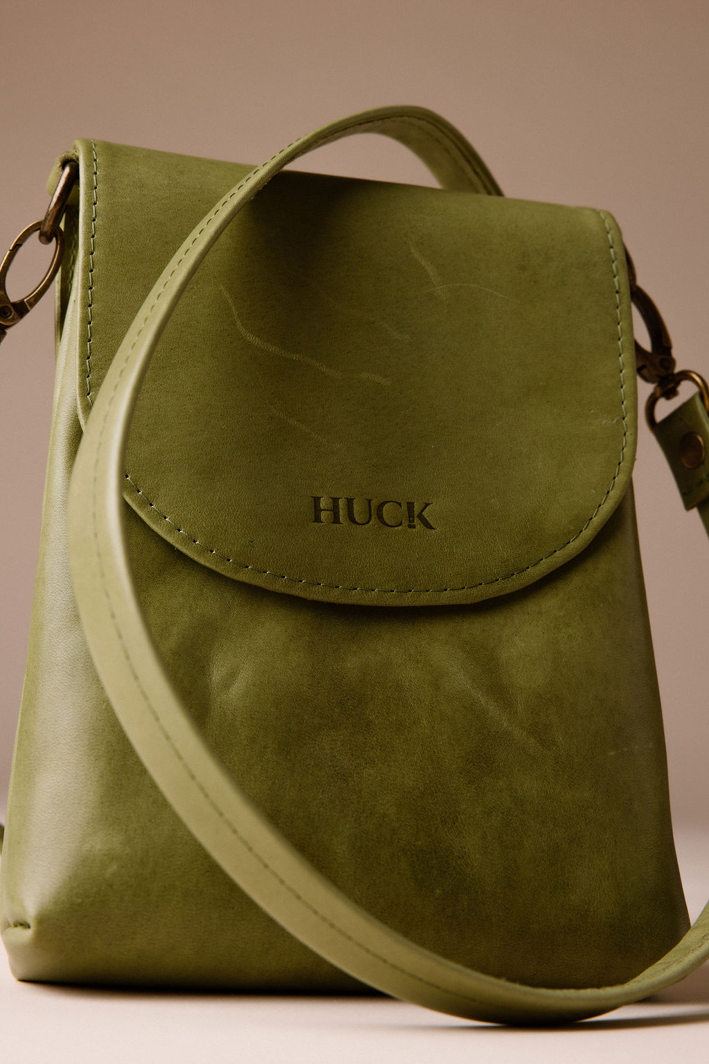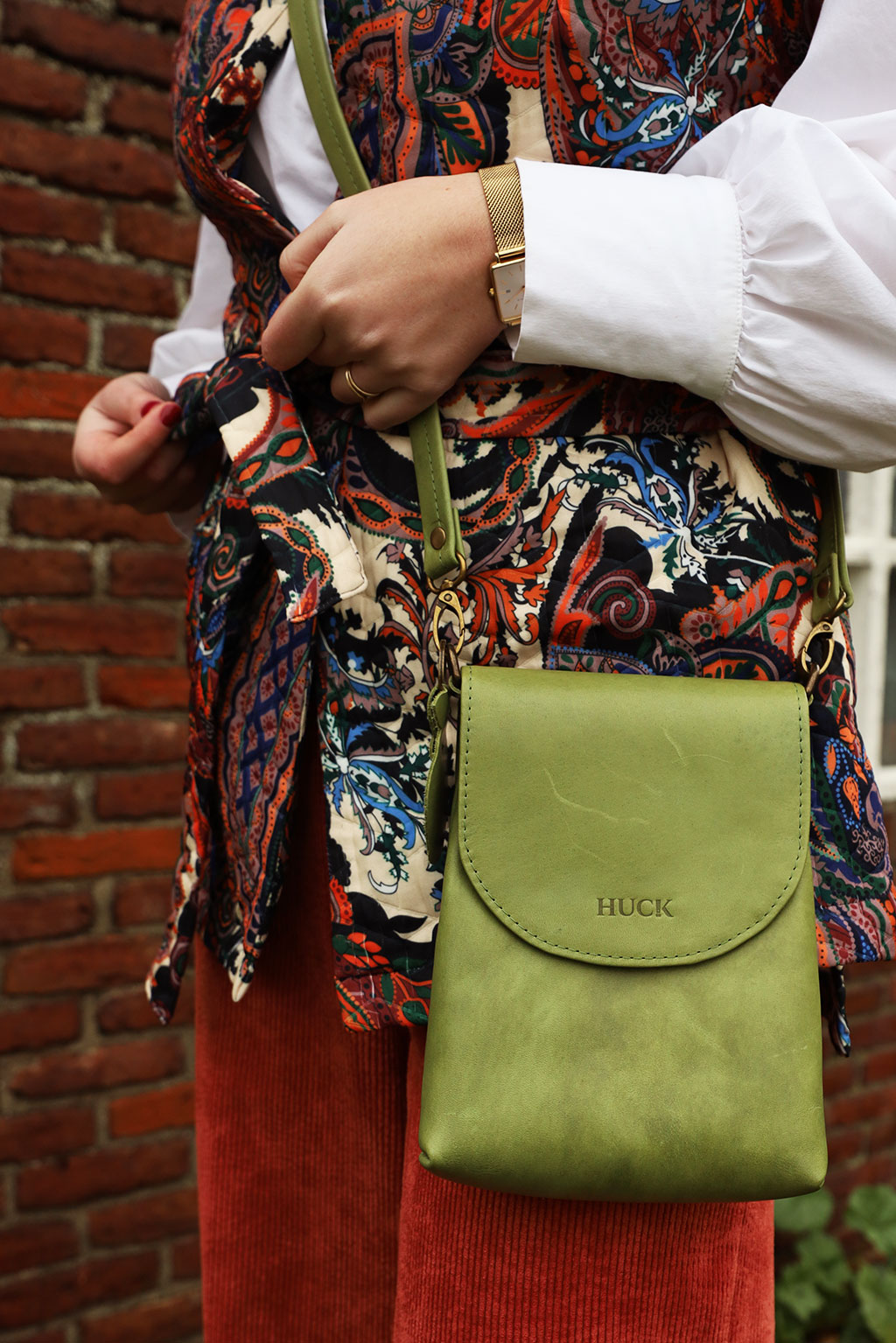 De Huck Bold in Moss is een rustige, natuurlijke groentint die bij elke outfit past. Het plantaardig gelooide leer voelt stevig en soepel, en de voering van herwonnen katoen maakt het geheel extra verantwoord. Een duurzame Nederlandse design tas met karakter die je eindeloos kunt personaliseren.
